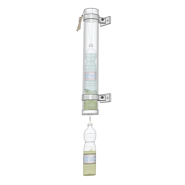 weight (here: full bottle) hanging on rope, attached to loose bracket